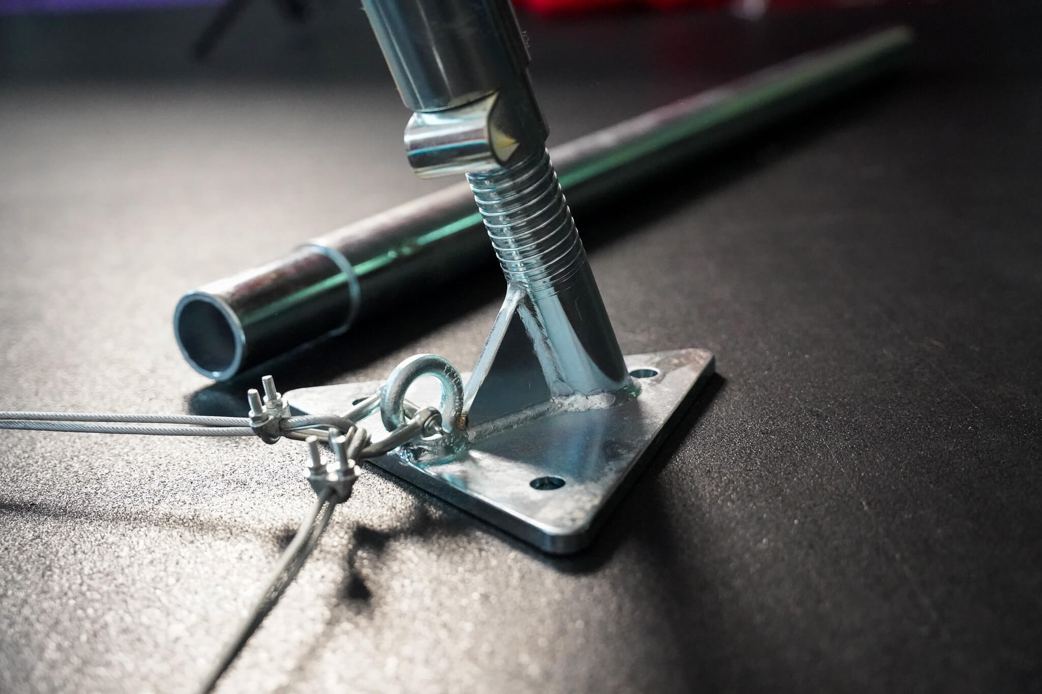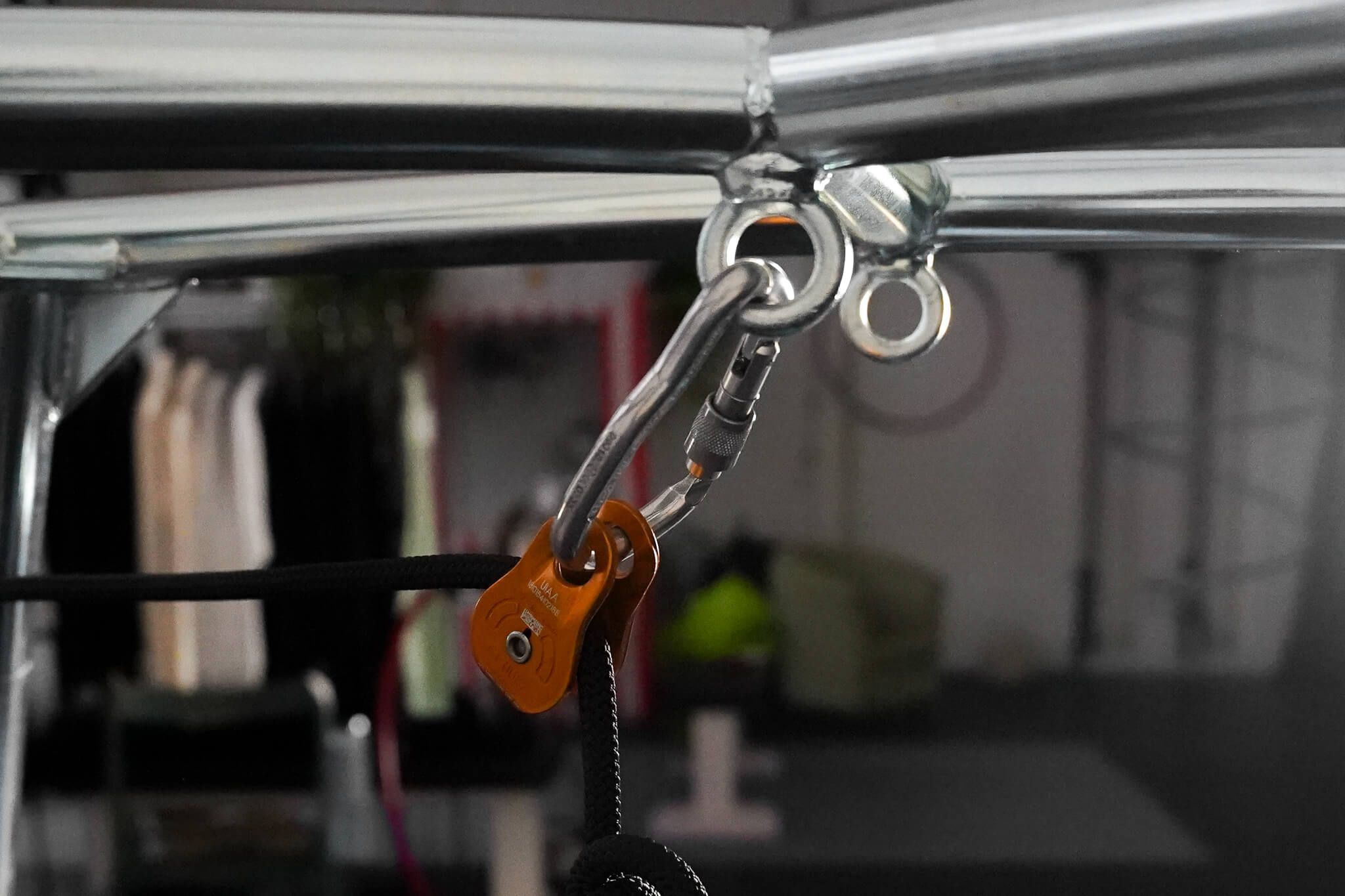 - Lo spessore dei pali è calcolato per renderla conforme alle normative e per sorreggere carichi dinamici durante oscillazioni, transizioni in movimento ed evoluzioni acrobatiche dall’alto verso il basso.